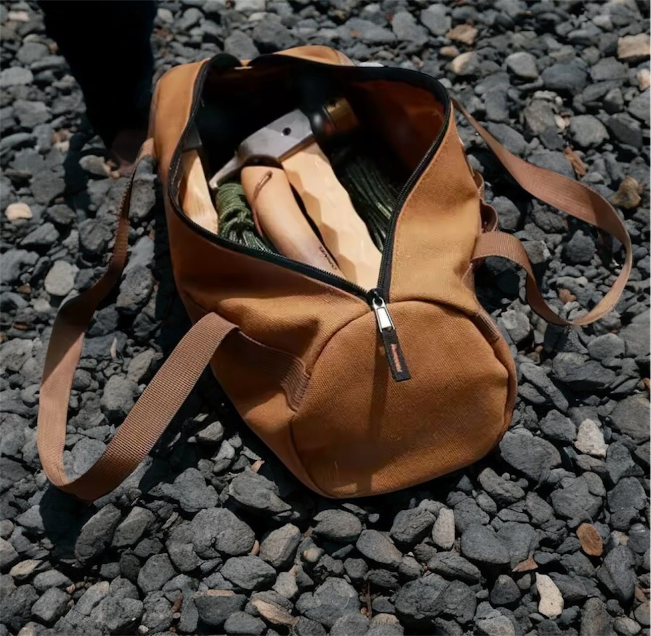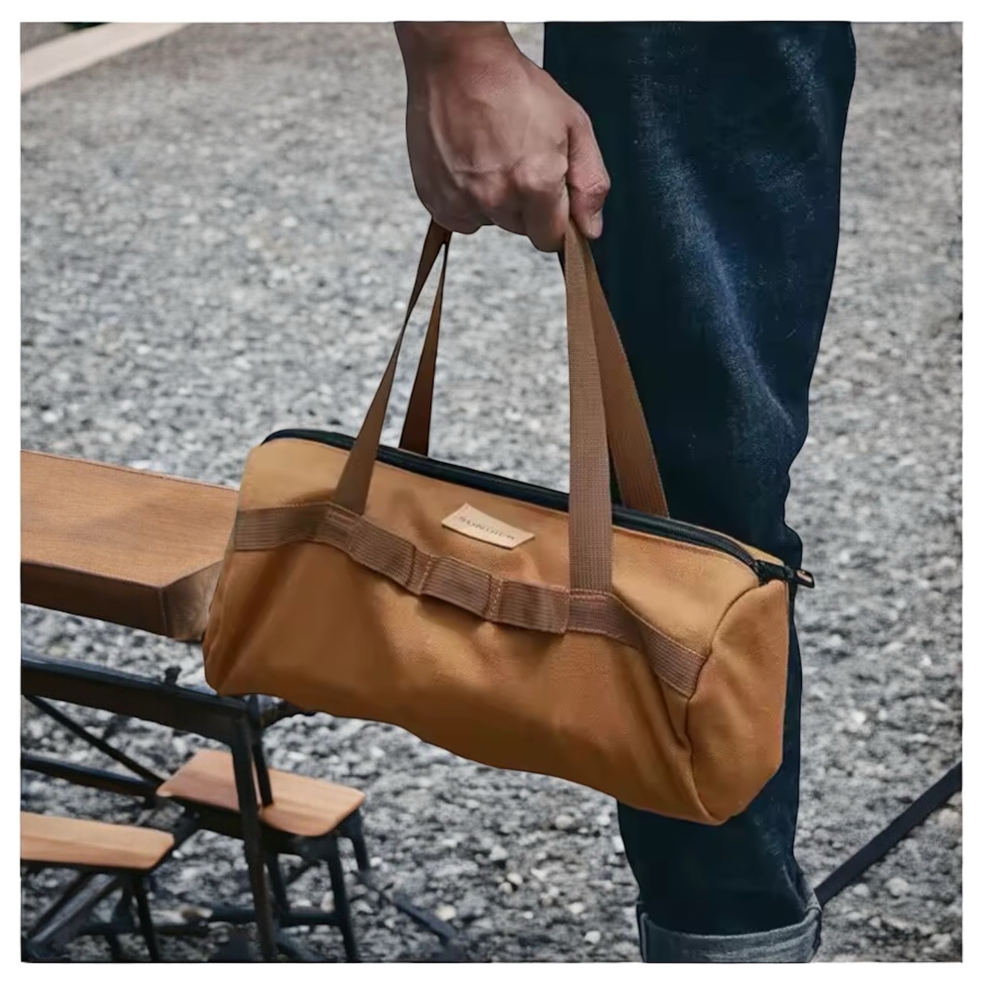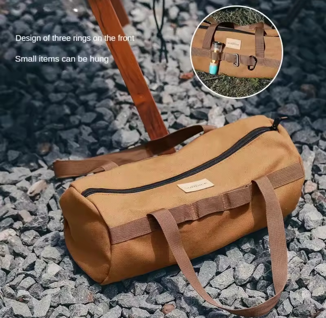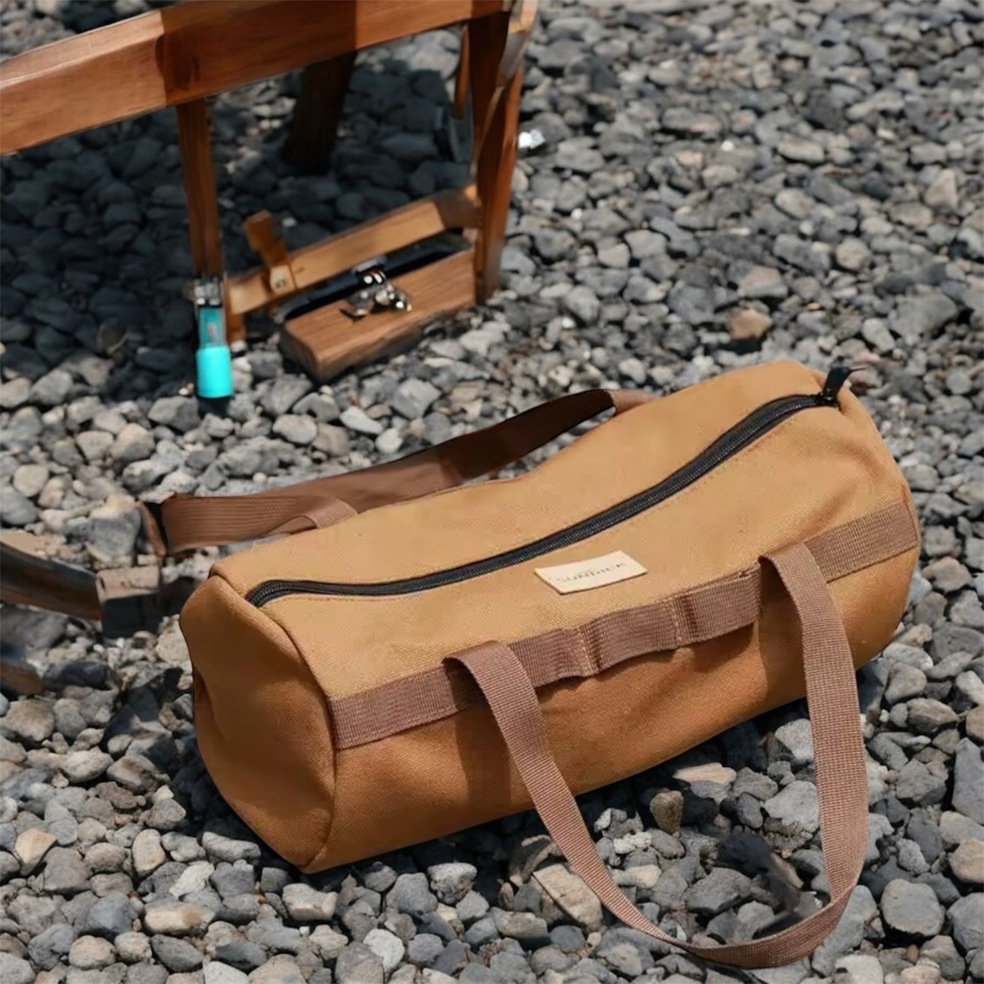 Heavy-duty canvas ensures durability for outdoor use. Perfect for tools, camping gear, and travel.
